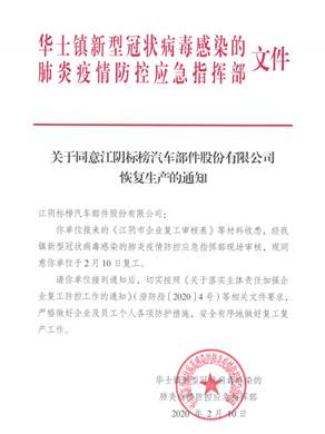 公司積極向江陰市政府申請(qǐng)復(fù)工,于正月十七接華士鎮(zhèn)新型冠狀病毒感染的肺炎疫情防控應(yīng)急指揮部文件通知, 公司正式啟動(dòng)了生產(chǎn)計(jì)劃編排、關(guān)鍵設(shè)備物料拉動(dòng)和員工召回等各項(xiàng)具體工作,在全面做好工作區(qū)域消毒和員工防護(hù)的前提下,緊急開(kāi)展復(fù)工,保證產(chǎn)品準(zhǔn)時(shí)交付。
